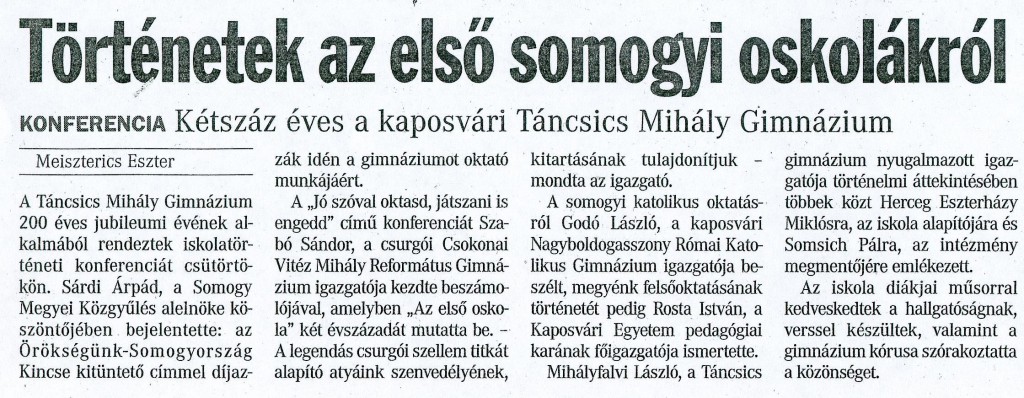 A csurgói gimnázium igazgatója nyitotta meg a kaposvári konferenciát.