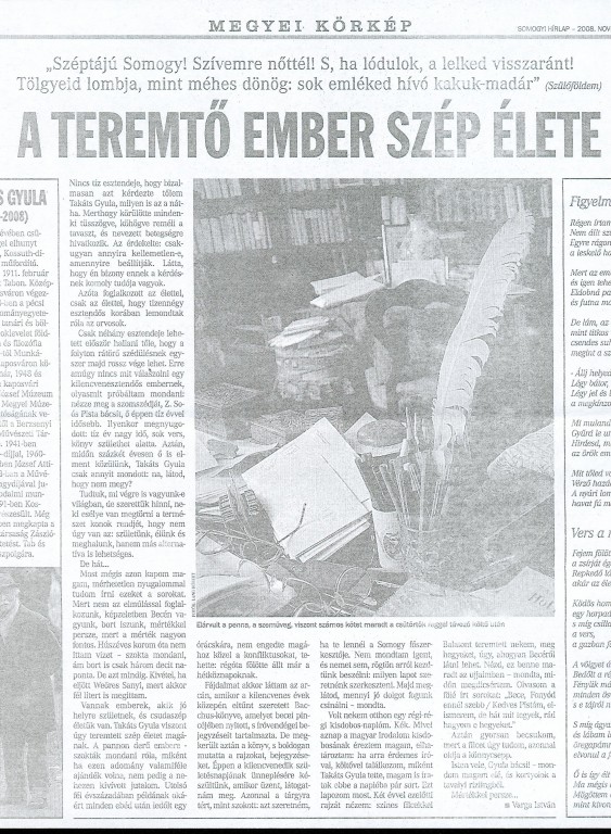 Takáts Gyula, Kossuth-díjas költő, író és műfordító emlékére. Elhunyt életének 98. évében.
