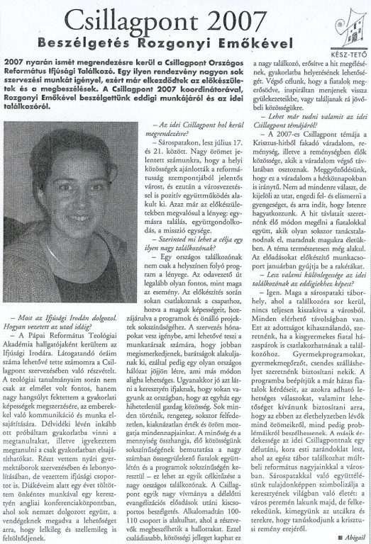 Rozgonyi Emőke, iskolánk volt diákja szervezőként dolgozott a Csillagpont Országos Református Ifjúsági Találkozón.