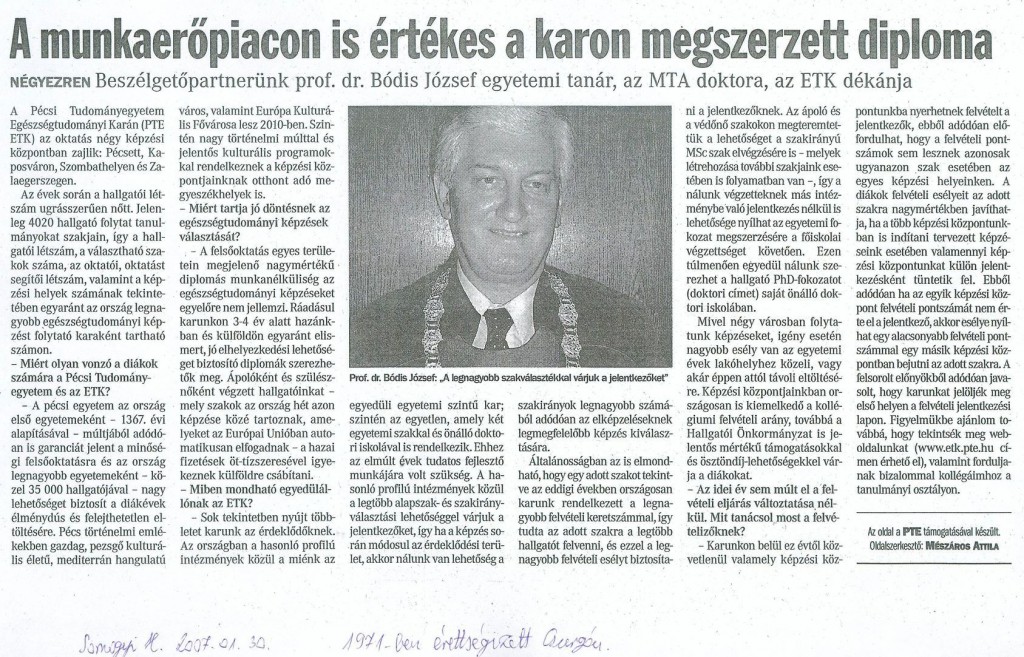 Beszélgetőpartnerünk prof. dr. Bódis József egyetemi tanár