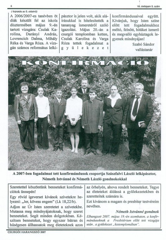 A 2006/2007-es tanévben öt diák készült fel az iskola dísztermében május 9.-én tartott vizsgára.