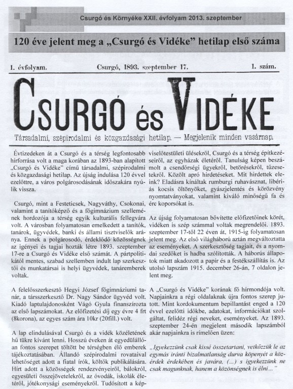 Csurgó, mint a Festeticsek, Nagyváthy, Csokonai, valamint a tanítóképző és a főgimnázium szellemének hordozója, a térség egyik kulturális fellegvára volt. Ennek a polgárosodó, érdeklődő közösségnek az igényei és tagjai hozták létre 1893. szeptember 17-én a Csurgó és vidéke első számát.