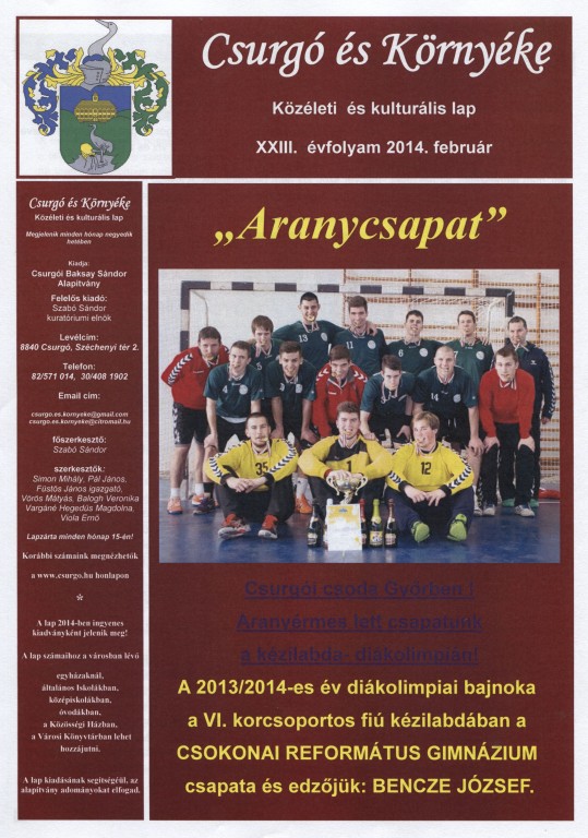 Aranyérmes lett csapatunk a kézilabda- diákolimpián. Forrás Csurgó és környéke Megjelenés dátuma 2014. 03. 15. Rögzítés dátuma 2015. 11. 06.