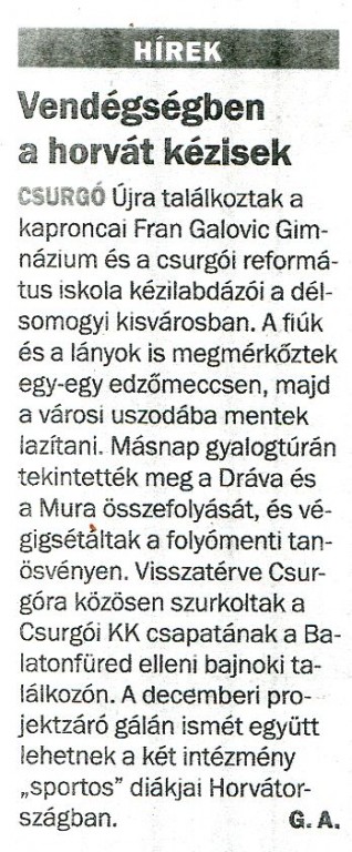 Közös programon vettek részt a kaproncai és a csurgói gimnázium diákjai. Forrás Somogyi Hírlap Szerző Gamos Adrienn Megjelenés dátuma 2018. 11. 22. Rögzítés dátuma 2018. 11. 26.