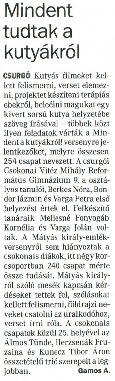 Két versenyben is jól szerepeltek a csurgói gimnazisták. Forrás Somogyi Hírlap Szerző Gamos Adrienn Megjelenés dátuma 2018. 12. 20. Rögzítés dátuma 2019. 01. 09.