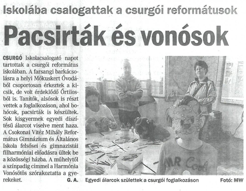 Iskolába csalogató farsangi álarcokat készítettek a gyerekek. Majd filmharmónia koncerten vettek részt a felső tagozatosok és a gimnazisták, ahol a Harmónia Vonósötös szórakoztatta a hallgatóságot.