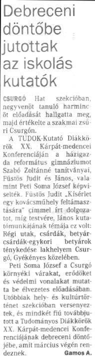 Három dolgozattal indult a házigazda gimnázium a TUDOK XX. Kárpát-medencei konferenciáján, melyből ketten továbbjutottak a debreceni döntőbe.