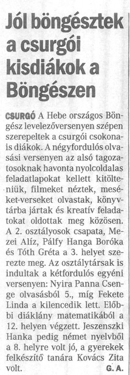 A Hebe Országos levelezőversenyen szép eredményeket értek el a csurgói Csokonai diákjai.