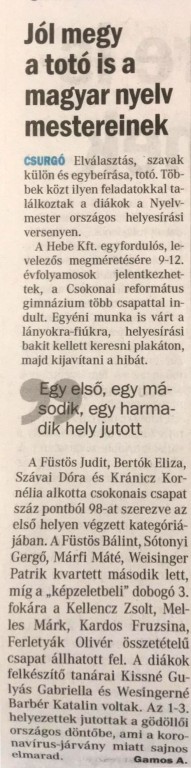 Egy első, egy második és egy harmadik helyezés is jutott a Csokonai gimnázium diákjainak a Hebe Kft. levelezős versenyén.