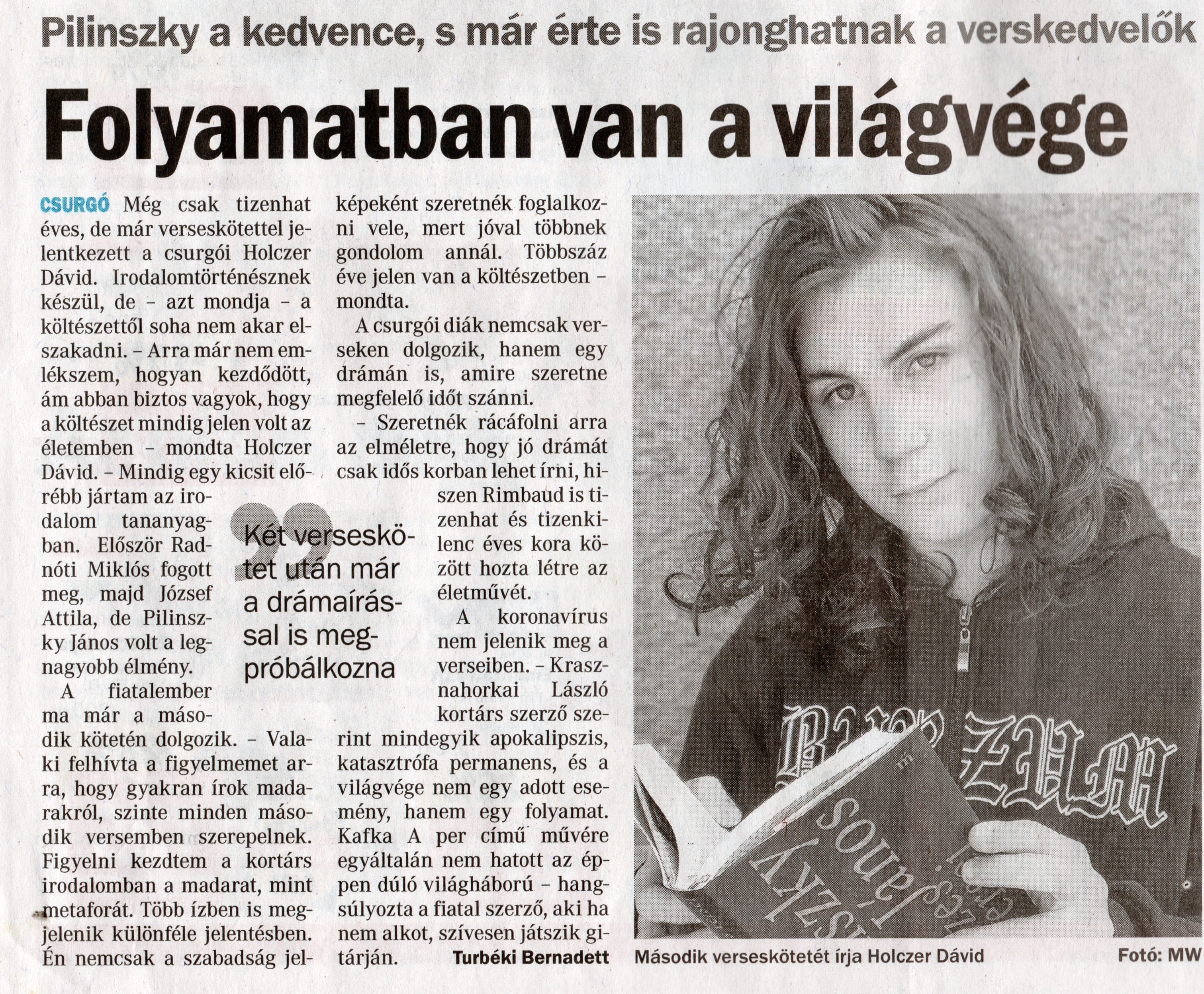 Holczer Dávid a Csokonai gimnázium tanulója már egy verseskötettel büszkélkedhet, de már a következő is készül. Róla szól a megyei napilap írása.