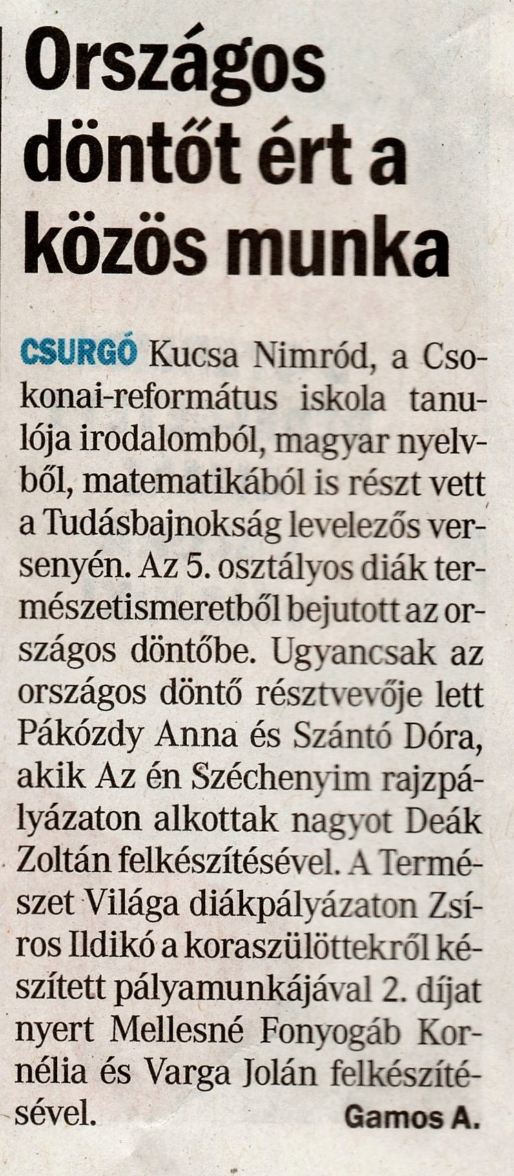 Iskolánk diákjai előkelő versenyeredményekkel gazdagították az intézményt. Forrás Somogyi Hírlap Szerző Gamos Adrien Megjelenés dátuma 2021. 05. 21. Rögzítés dátuma 2021. 05. 27.