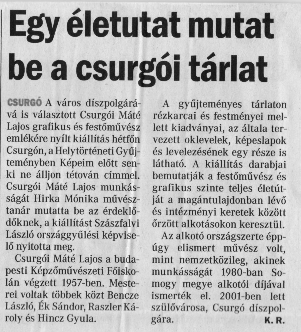 Egy életutat mutat be a csurgói tárlat