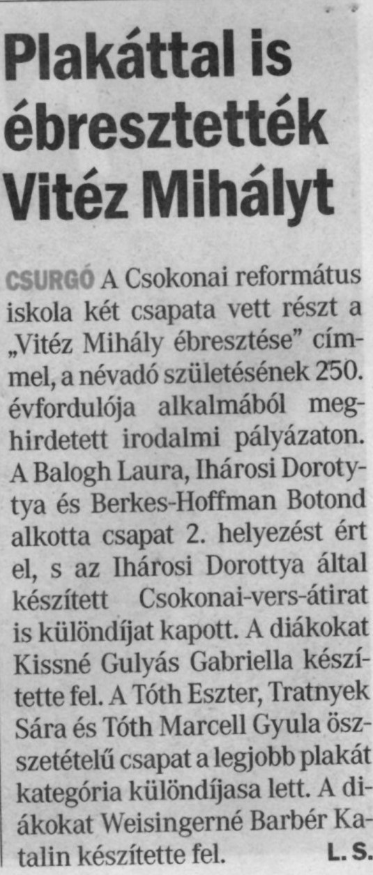 "De tán jő / Oly idő, / Melyben nékünk / A vidékünk / Új Hélikon lesz."