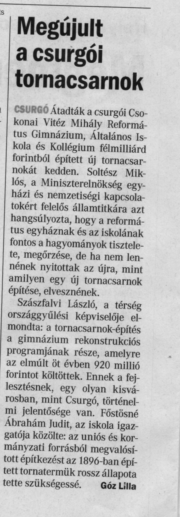 Megújult a csurgói tornacsarnok