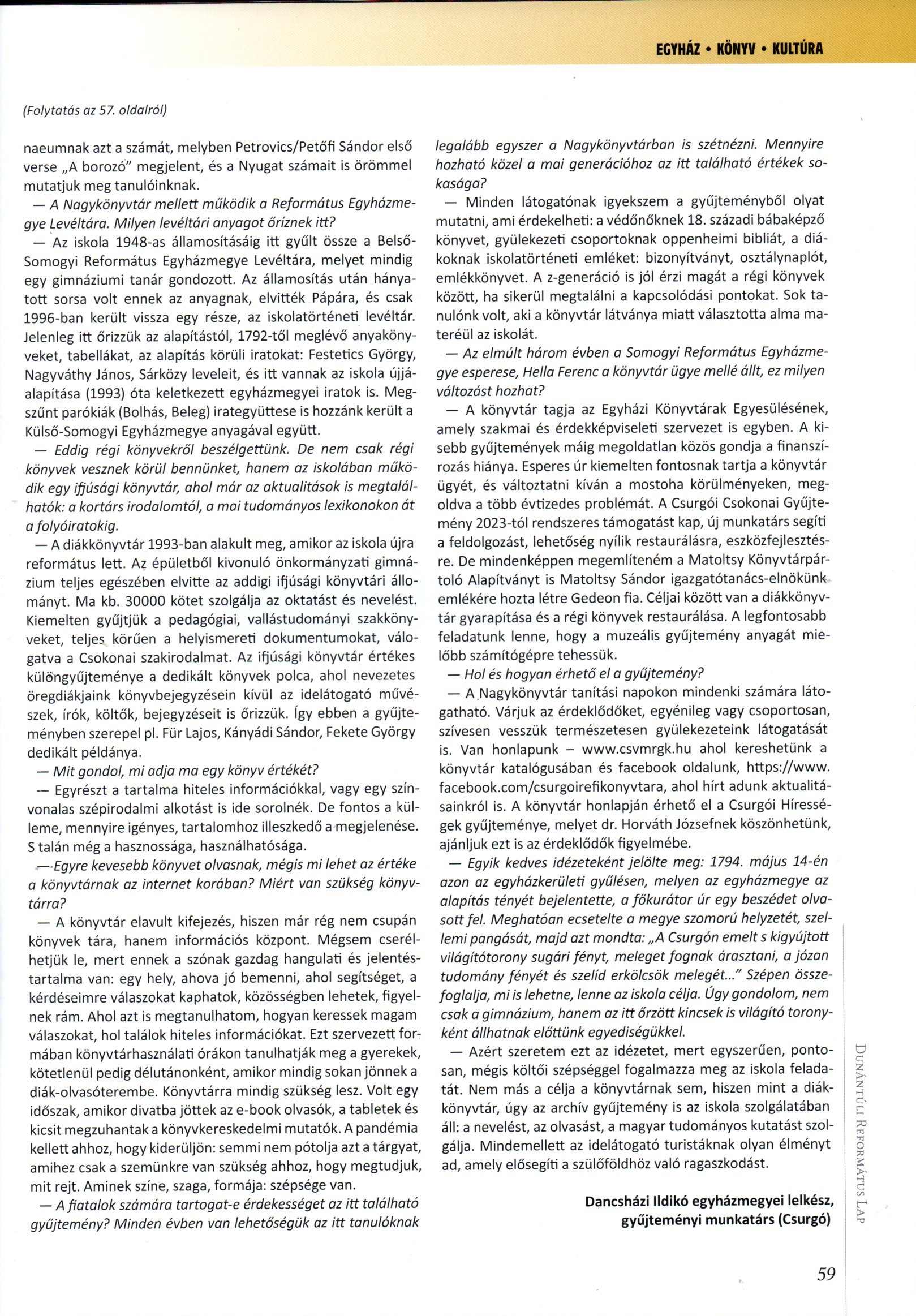 Csokonai Vitéz Mihály Református Gimnázium, Általános Iskola és Kollégium Könyvtára