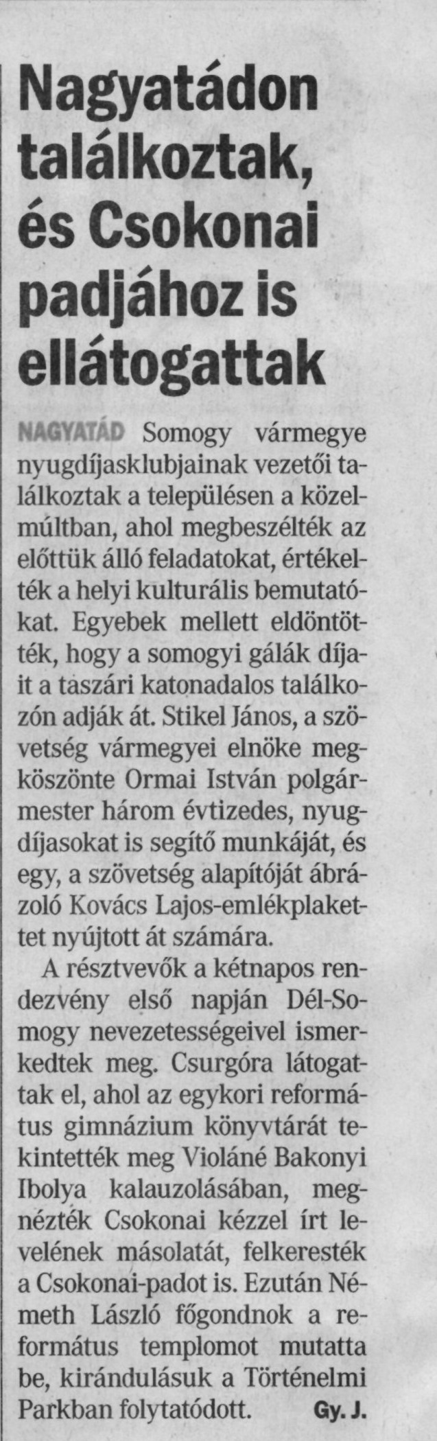 Nagyatádon találkoztak, és Csokonai padjához is ellátogattak