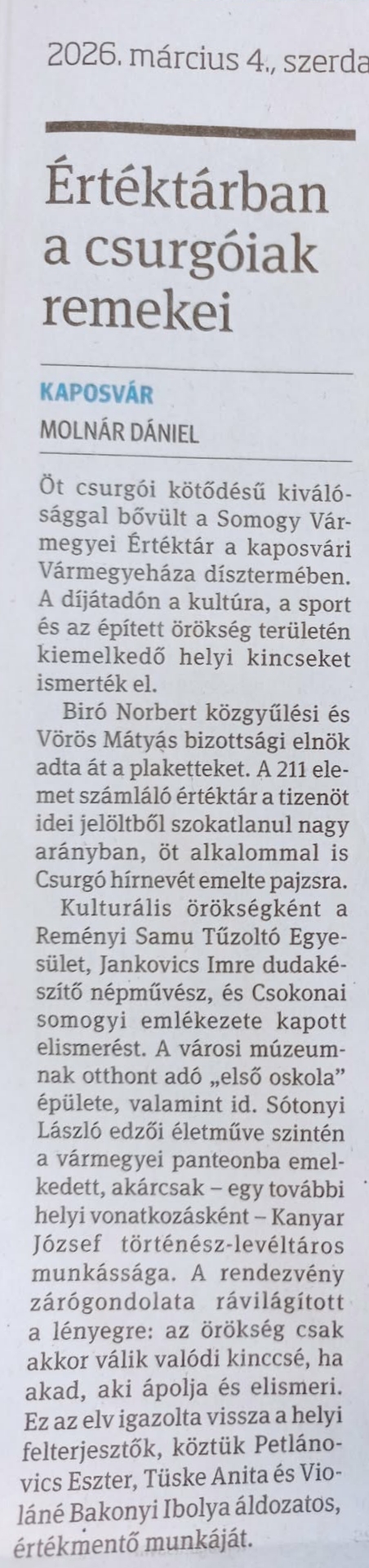 Értéktárban a csurgóiak remekei