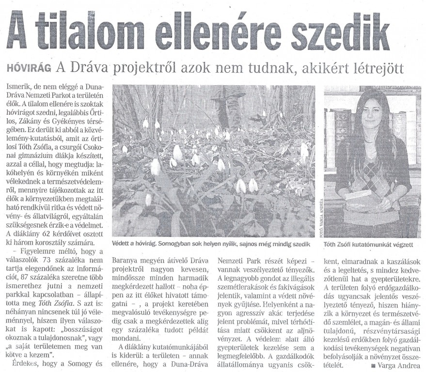 Tóth Zsófia, a református gimnázium diákja, kérdőívet készített, hogy mennyire ismeri a környék lakossága a Dráva projektet.