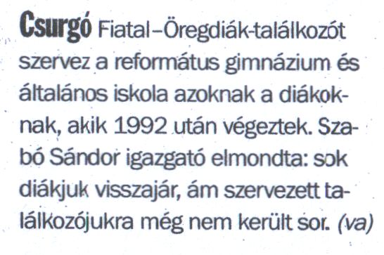 Fiatal-Öregdiák találkozót szervez a református gimnázium az 1992 után végzett tanulók számára.