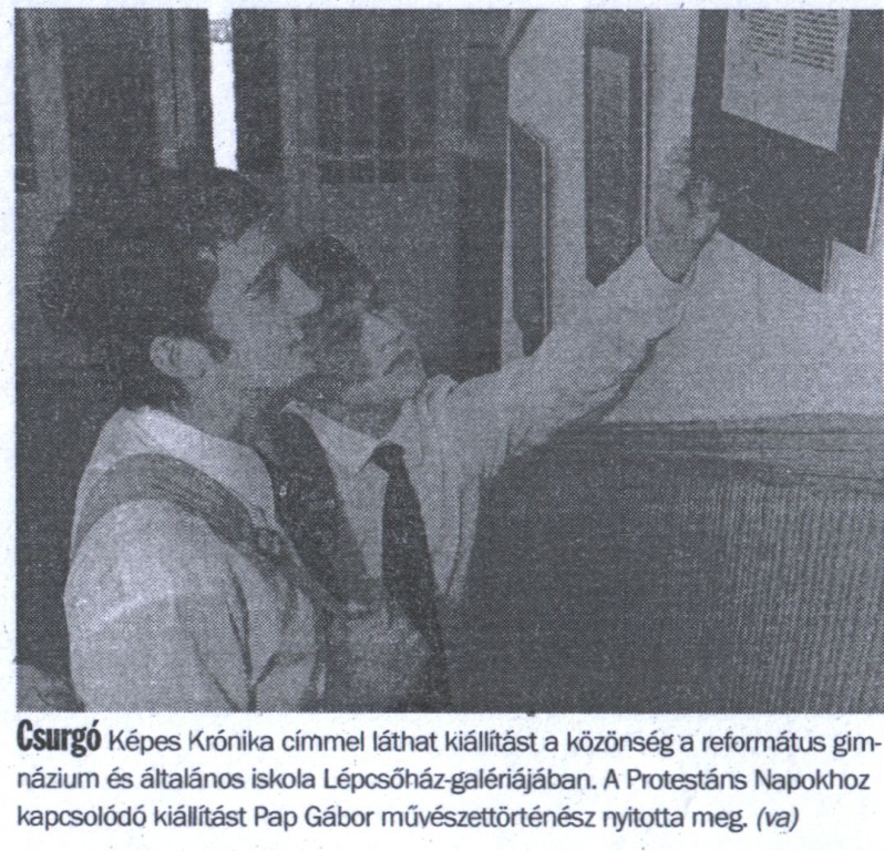 Képes Krónika címmel kiállítás nyílt a református gimnázium Lépcsőház-galériájában. Forrás Somogyi Hírlap Szerző Varga Andrea Megjelenés dátuma 2005. 11. 07. Rögzítés dátuma 2010. 12. 27.