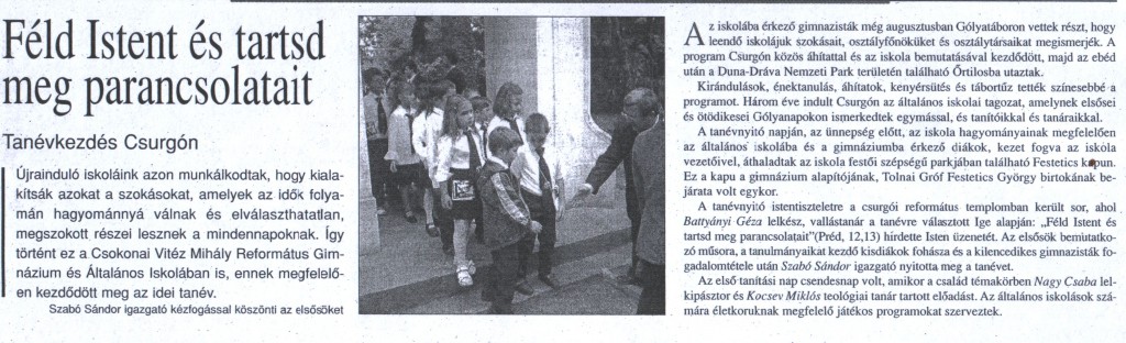 Tanévkezdés Csurgón Alcím Tanévkezdés Csurgón Forrás Reformátusok Lapja Megjelenés dátuma 2005. 09. 18. Rögzítés dátuma 2010. 12. 14.