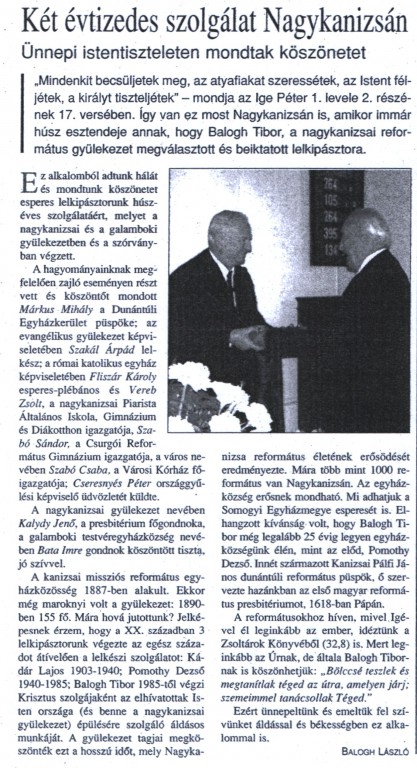 Köszönet Balogh Tibor lelkipásztornak, a Somogyi Egyházmegye esperesének, két évtizedes szolgálatáért.