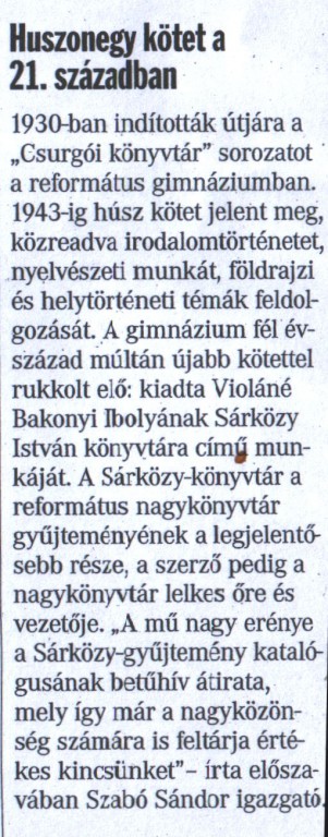 Fél évszázad múltán újabb kötet jelent meg: Violáné Bakonyi Ibolya - "Sárközy István könyvtára" című munkája.
