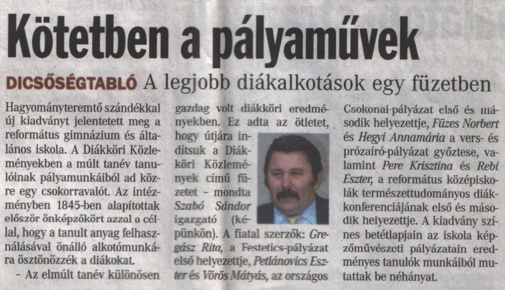 Hagyományteremtő szándékkal új kiadványt jelentetett meg a református gimnázium Diákköri Közlemények címmel.