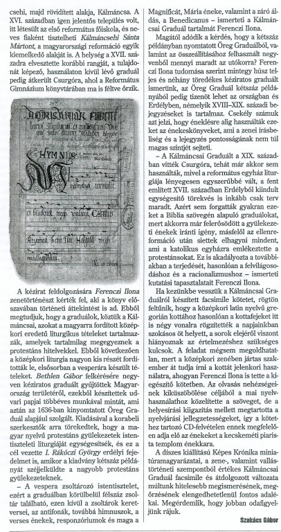 XIX. században a csurgói Református Gimnázium tulajdonába került Kálmáncsai Graduál feldolgozása és tanulmánya.