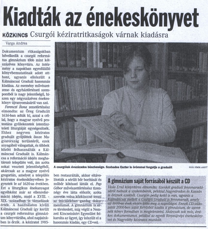 A csurgói református gimnázium a napokban egyedülálló könyvbemutatónak adott otthont, ugyanis elkészült a Kálmáncsai Graduál hasonmás kiadása.