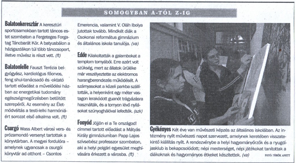 Wass Albert városi vers- és prózamondó versenyt rendeztek a csurgói könyvtárban. A megyei fordulóra Csontos Emerencia és Oláh Ilona jutottak tovább. Mindketten a csurgói református gimnázium tanulói.