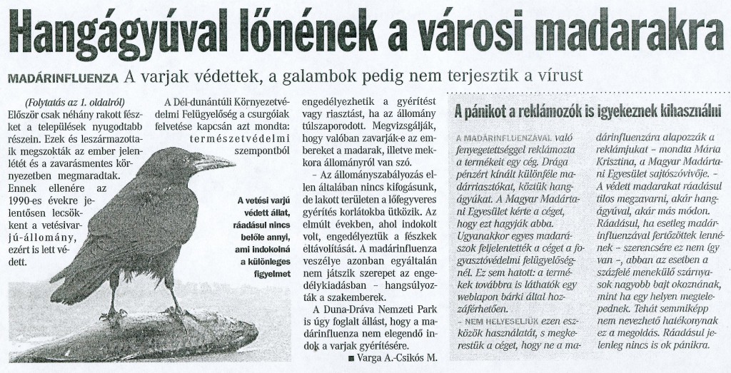H5N1 A varjak védett állatok, a galambok nem terjesztik a vírust