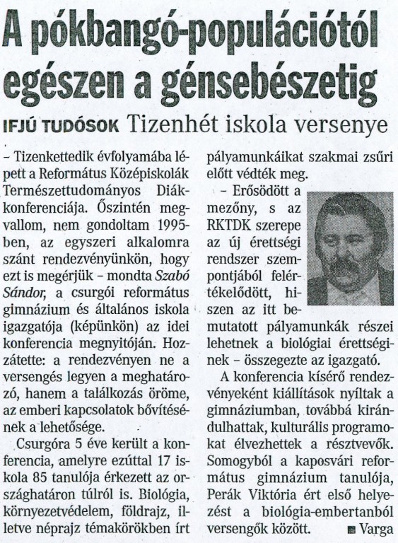 A Református Középiskolák Természettudományos Diákkonferenciája
