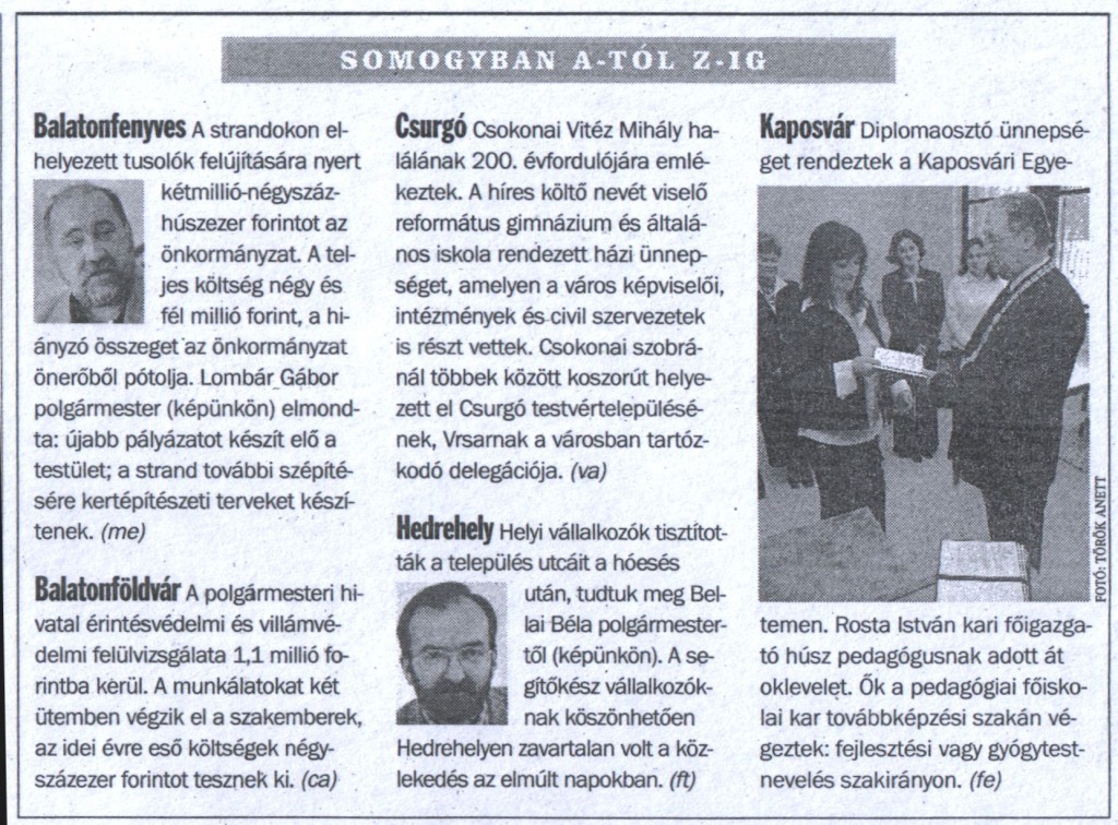 Csokonai halálának 200. évfordulójára emlékeztek. A híres költő nevét viselő református gimnázium és általános iskola házi ünnepséget rendezett, amelyen a város képviselői, intézmények és civil szervezetek is részt vettek.