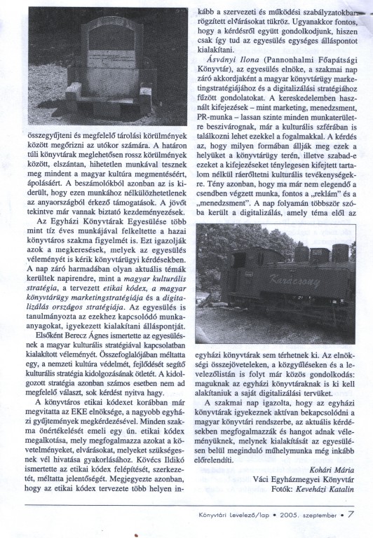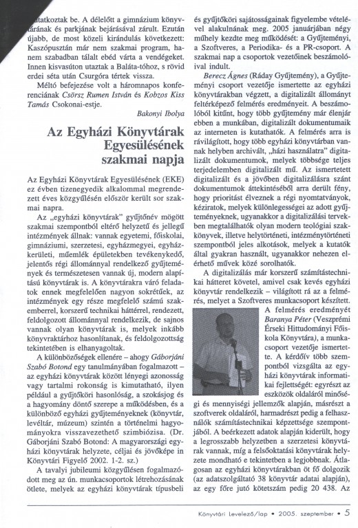 2005. június 27-29-én Csurgón, a Csokonai Vitéz Mihály Református Gimnáziumban tartotta tizenegyedik évi közgyűlését az Egyházi Könyvtárak Egyesülése, melyen először került sor szakmai napra.