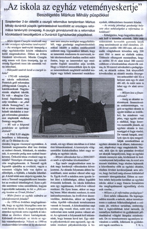 Beszélgetés Márkus Mihály püspökkel a csurgói gimnáziumról és a református közoktatásról.