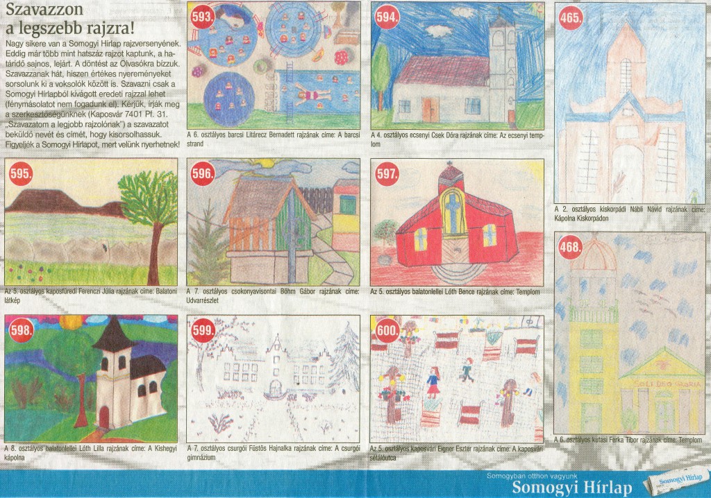 Somogyi Hírlap rajzversenye, ahova a 7-ik osztályos csurgói Füstös Hajnalka is beküldte rajzát