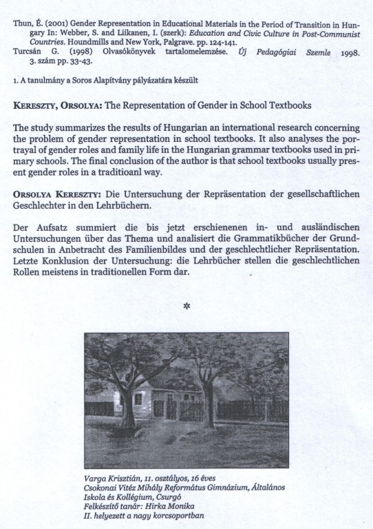 Varga Krisztián 11. osztályos tanuló, II. helyezett képe. Forrás Könyv és nevelés Megjelenés dátuma 2005. 07. 01. Rögzítés dátuma 2010. 12. 28.
