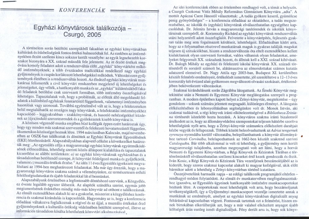 Június 27-29-én Csurgón, a Csokonai Vitéz Mihály Református Gimnáziumban tartotta tizenegyedik évi közgyűlését az Egyházi Könyvtárak Egyesülése.