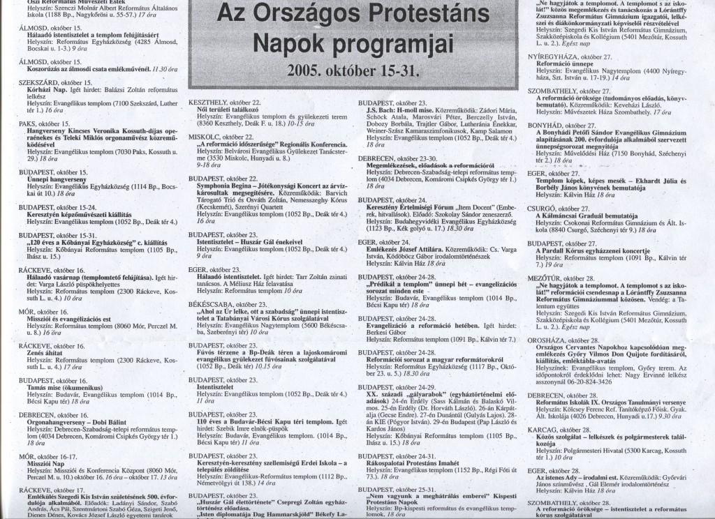 Iskolánk is szerepelt az országos programok között rendezvényével. Forrás Reformátusok Lapja Megjelenés dátuma 2005. 10. 08. Rögzítés dátuma 2011. 01. 04.