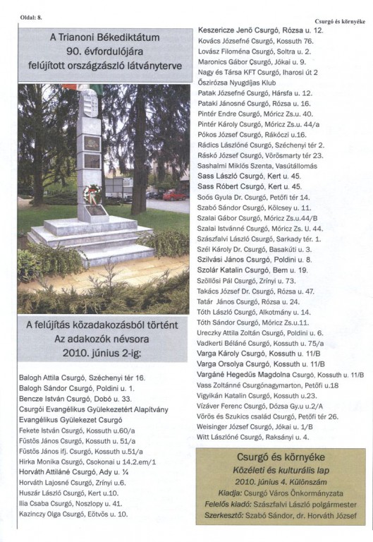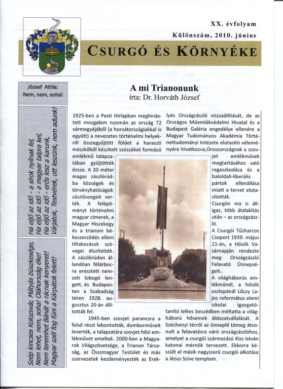 A szerző összefoglalója a Csurgót is érintő trianoni döntés következményeiről.