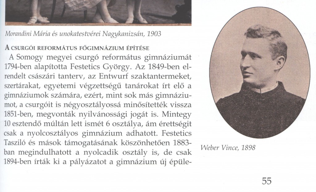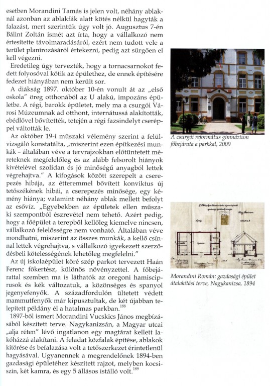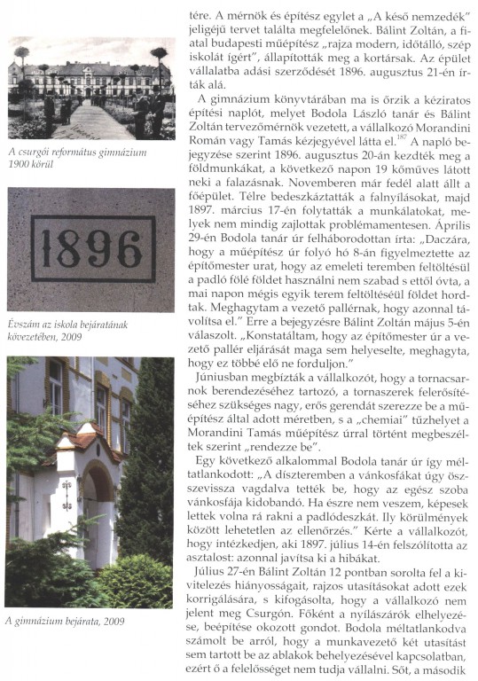 A szerző az építészcsalád bemutatásában részletesen ír a csurgói református gimnázium megépítéséről is.