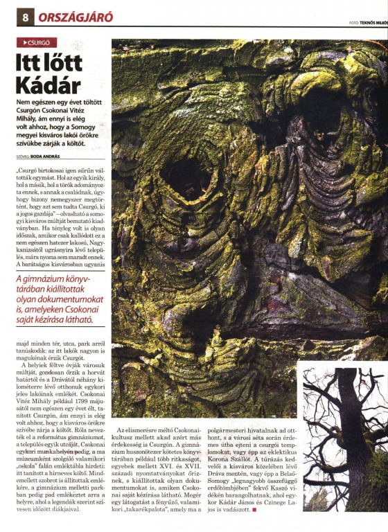 Csurgó város fényképekkel illusztrált rövid, köztük a gimnázium bemutatása az országos napilapban.