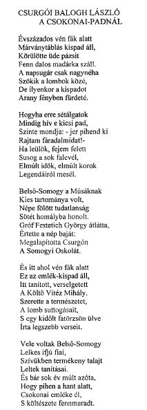 Csurgói Balogh László verse. Forrás Csurgó és környéke Szerző Csurgói Balogh László Megjelenés dátuma 2001. 06. 10. Rögzítés dátuma 2011. 01. 22.