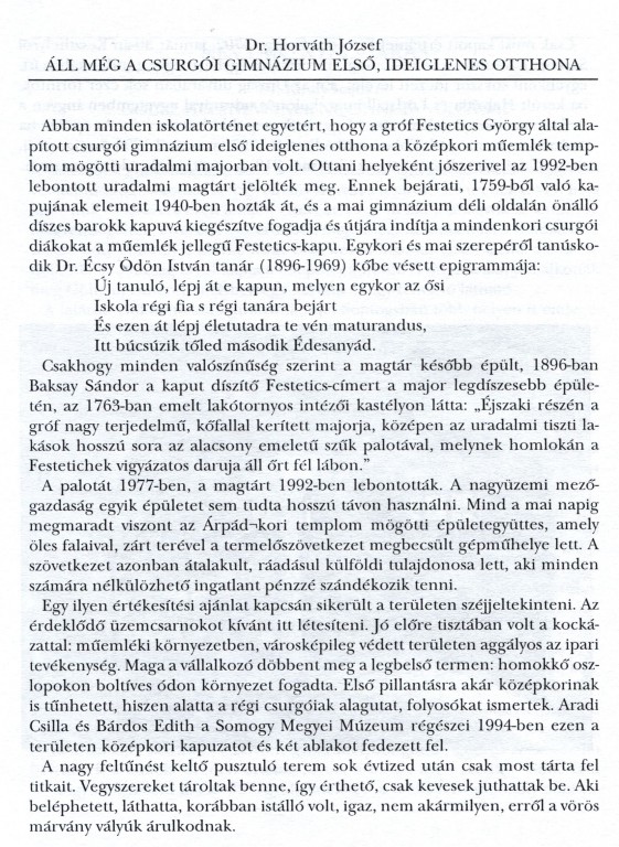 A szerző körüljárhatta a Csokonai gimnázium első ideiglenes otthonát és a tapasztalatait vetette papírra.