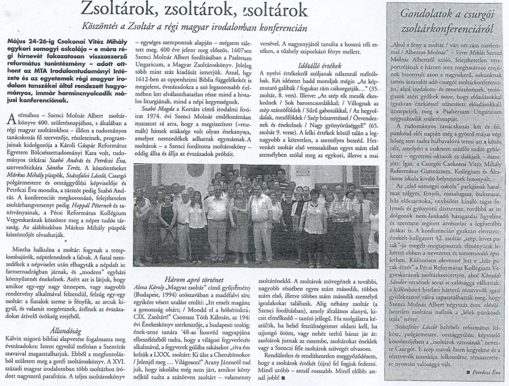 Május 24-26-ig Csokonai Vitéz Mihály egykori somogyi oskolája - a mára régi hírnevét fokozatosan visszaszerző református intézmény- adott otthont az MTA Irodalomtudományi Intézete és az egyetemek régi magyar irodalom tanszékei által rendezett hagyományos, immár harmincnyolcadik konferenciának.
