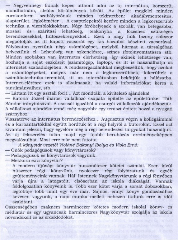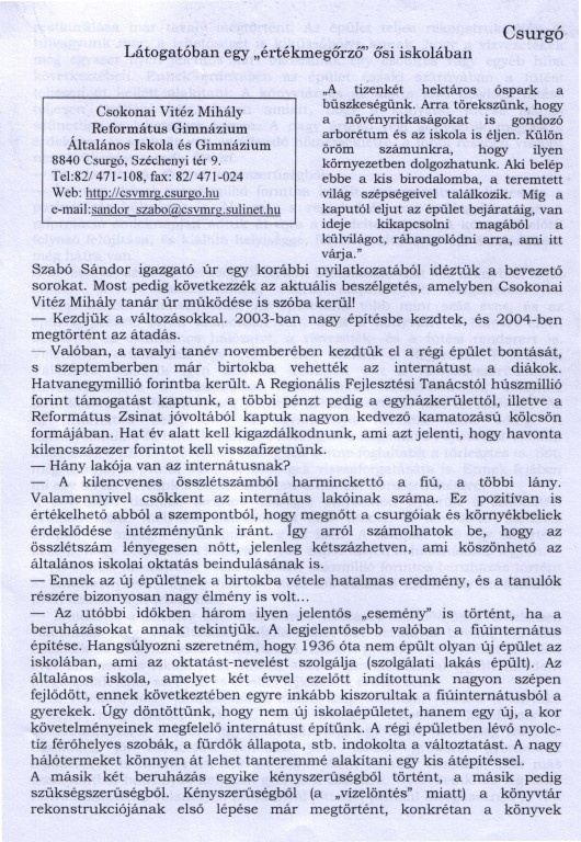 Interjú Szabó Sándor igazgató úrral az iskolai beruházásokról Forrás Csurgó Megjelenés dátuma 2004. 02. 10. Rögzítés dátuma 2011. 03. 26.