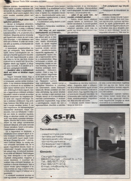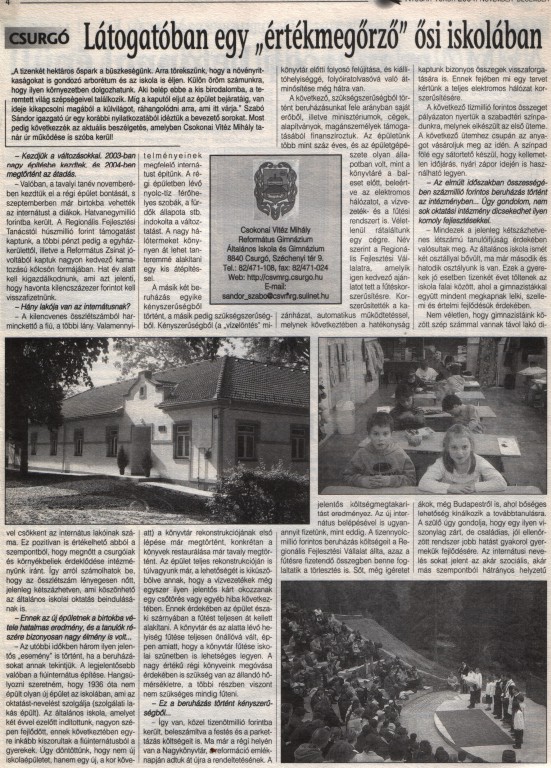 Beszélgetés Szabó Sándor igazgató úrral az új internátus felépítéséről. Forrás Nyuhati Tükör Megjelenés dátuma 2004. 11. 16. Rögzítés dátuma 2011. 03. 26.
