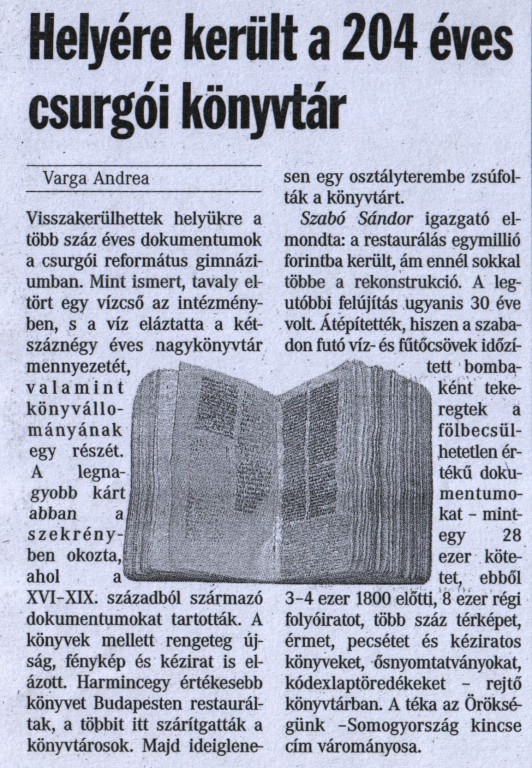 Visszakerülhettek a helyükre a több száz éves dokumentumok a csurgói Református Gimnázium könyvtárába.