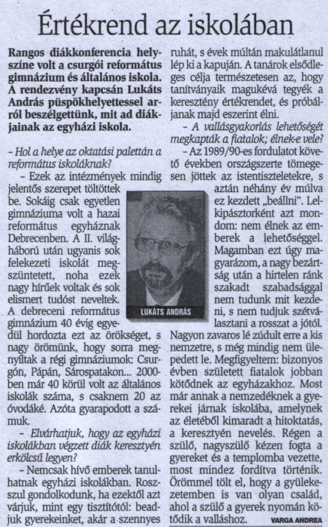 Lukáts András püspökhelyettessel készített interjú a csurgói Református Gimnáziumban tartott rangos diákkonferencia alkalmából.